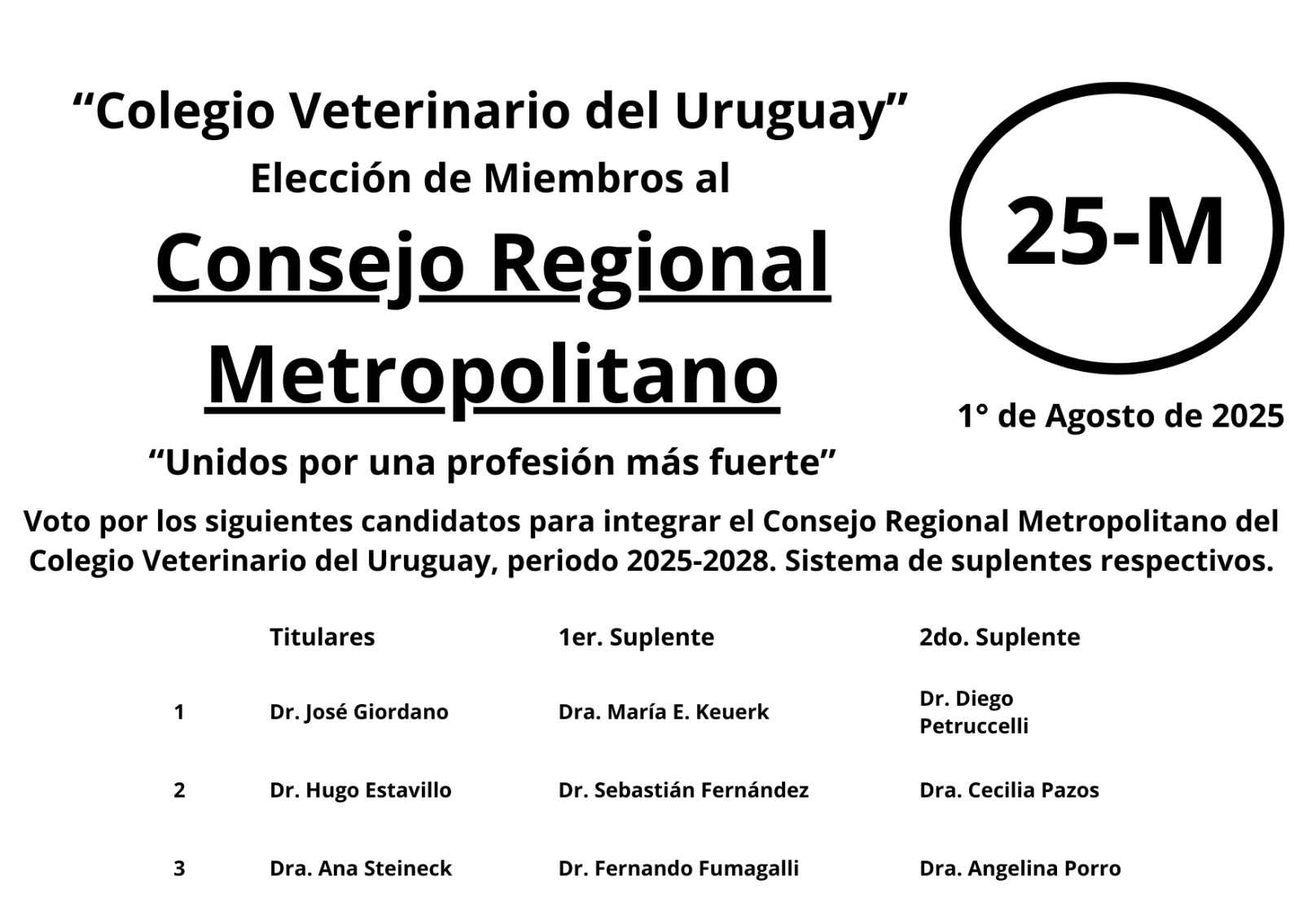Compartimos con ustedes las listas con vistas a las elecciones de autoridades del Colegio Veterinario del Uruguay el próximo viernes 1º de agosto: